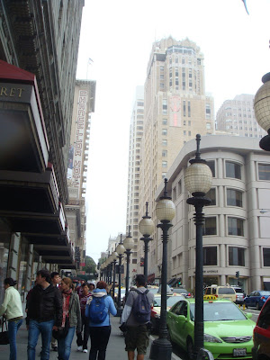 Ever since the inquisition of my awesome happy ringtone from the 500 Days of Summer soundtrack, I've been crazy listening to all things related to the movie. She & Him became a daily listen and Zooey Deschanel's voice just brings me back to Old Hollywood glamour; smooth, musky, beautiful, it's utterly perfect. Anyways, I found out, at the last possible second (a day before), that She & Him was preforming at SF...FOR FREE! So obviously I found a group of friends (floormates) to accompany me on the quest to see them! The next day (today) we hopped on bart and made our way up to the city and, when we got there, we see that everything was fenced off so WE COULDN'T GET IN! -______- We resorted to standing along the side to see them and, let me just tell you, IT WAS SO WORTH IT! AHHHH! My heart was swooning and swelling the whole time! Her voice sounds exactly as it does on her records, it was so gorgeous.